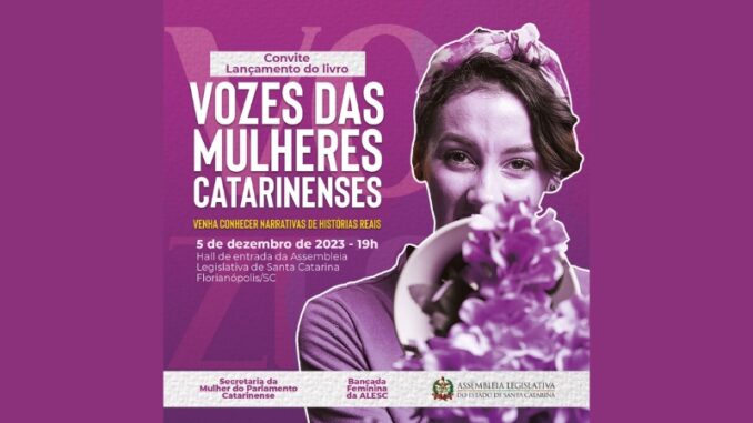 O livro “Vozes das Mulheres Catarinenses – Narrativas de Histórias Reais” será lançado nesta terça-feira, 5, às 19h, pela Secretaria da Mulher da Assembleia Legislativa de Santa Catarina (Alesc). A obra tem o objetivo de desmistificar a pauta do feminismo, trazendo a relevância do tema para a sociedade atual. Pela ótica e narrativa de mais de 50 mulheres, de diversos segmentos da sociedade catarinense, o livro traz histórias, perspectivas, os sentimentos sobre o tema e a jornada da mulher nos tempos atuais.