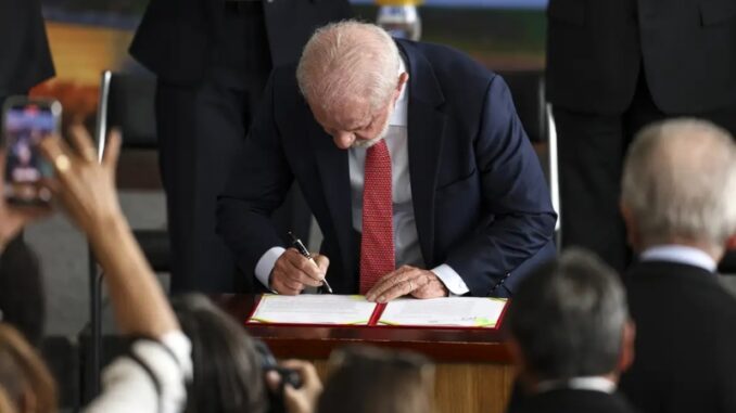 A assinatura do veto ocorreu durante cerimônia no Palácio do Planalto, em alusão aos três anos das invasões às sedes dos Três Poderes em Brasília. Os presentes à cerimônia comemoraram a decisão do petista.