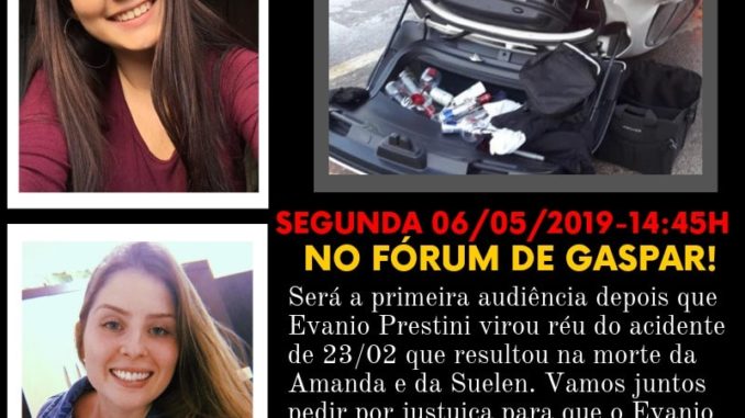 “Segunda-feira as 15 horas vai acontecer a primeira audiência desde que o ministério público considera Evanio Prestini réu no processo e é de EXTREMA importância que a nossa movimentação continue! É o clamor público que está mantendo ele preso, é a nossa força e os nossos pedidos por justiça! Não é justo que ele deixe de pagar pelo mal que fez a essas 5 meninas, ás suas famílias e a todos que são próximos delas, não é justo que elas se tornem apenas porcentagem, que esse seja só mais um caso. Elas não foram em vão! Que esse seja o começo da mudança, que a gente continue fazendo a diferença! Quero ver todos unidos na segunda-feira, em uma só voz, pedindo por justiça! Vamos ter um momento de oração também, pelas meninas. Levem seus cartazes, apitos, cornetas, buzinas e principalmente: Sua voz, sua indignação e seu respeito!