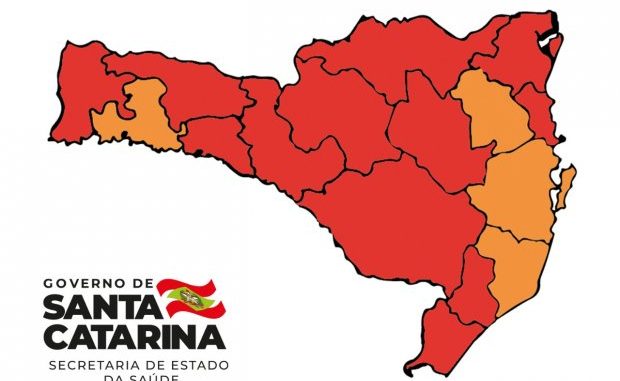 Grande Florianópolis, Laguna, Médio Vale do Itajaí e Oeste foram reclassificados para o nível grave (cor laranja). A última matriz, divulgada no dia 17, apontava todas as regiões com risco gravíssimo (cor vermelha).