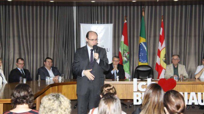 Não pude comparecer na solenidade ocorrida nesta quinta-feira, 18, no salão nobre da Prefeitura de Blumenau e por isso fico com as informações do release da Prefeitura.
