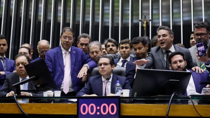 Durante a crise, o presidente da Câmara ameaçou suspender mandatos por até seis meses e acionou a polícia legislativa, que chegou a ser posicionada na porta do plenário. Após negociações, os parlamentares oposicionistas cederam e Motta conseguiu abrir a sessão.