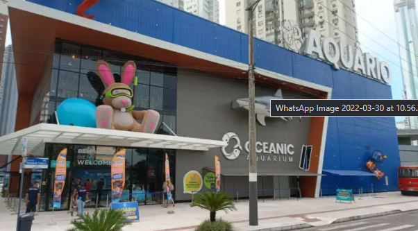 Do lado de fora, na fachada, ao lado do tubarão e embaixo do polvo, um coelho gigante inflável com 5 metros de altura, usando snorkel de mergulho, dá as boas vindas aos visitantes. Ao lado um ovo de páscoa enorme completa a decoração externa.