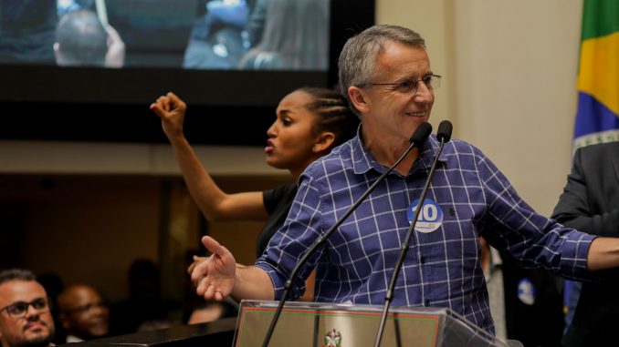 Presente à convenção do Republicanos, que oficializou a candidatura do governador Carlos Moisés à reeleição, o prefeito de Blumenau, Mário Hildebrandt, foi quem discursou em nome de todos os prefeitos do Podemos. Mais cedo, o partido havia ratificado em convenção o apoio a Moisés, que terá o empresário Udo Döhler (MDB) como candidato a vice.