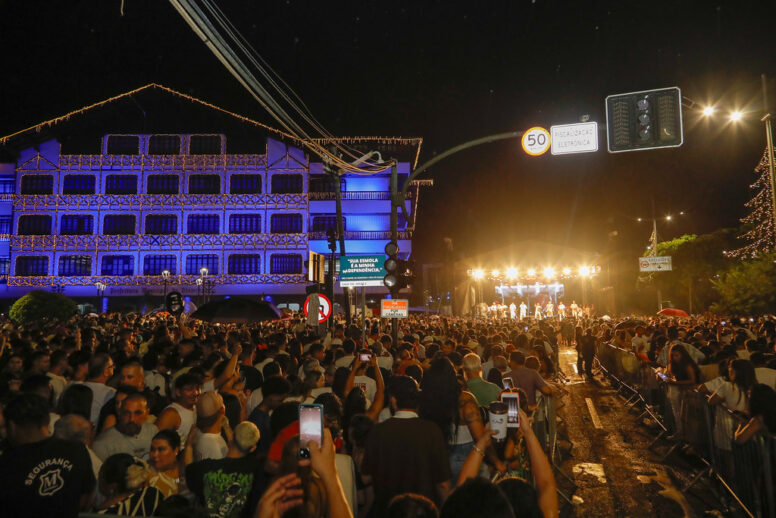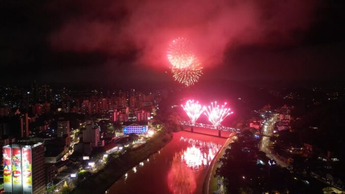 Uma multidão prestigiou a passagem de ano no centro de Blumenau, mesmo com a instabilidade do clima. Confira nas fotos do Giovanni Silva, da Prefeitura de Blumenau.