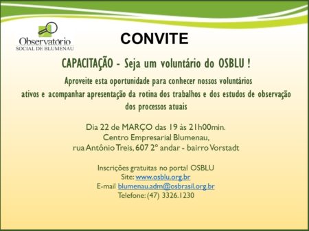 Mais informações em www.osblu.org.br ou pelo telefone (47) 3326-1230.