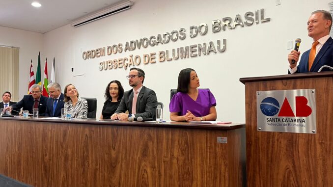 “Orgulho de fazer parte da Ordem dos Advogados”, manifestou-se Tramontin, destacando que recebeu a carteira de ex-alunos que hoje estão na linha de frente da entidade dos advogados de Blumenau.