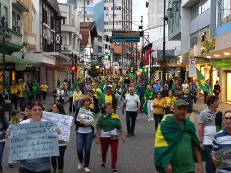 Na cidade, um grupo de pessoas foi às ruas manifestar apoio ao presidente e as propostas que ele defende. Cantaram o hino nacional, defenderam as bandeiras do Governo e caminharam pela Rua XV. De forma ordeira e democrática.