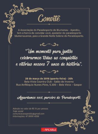 Ao completar sete anos, o projeto do Paradesporto de Blumenau quer homenagear os parceiros que foram e são importantes para que esta importante ação social tenha ganhado a dimensão que ganhou, colocando Blumenau na vitrine nacional quando o assunto é inclusão.