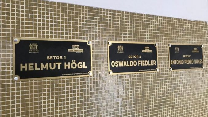 Em momento de forte simbolismo pelo cancelamento da Oktoberfest Blumenau 2020, a Prefeitura de Blumenau, por meio da Secretaria de Turismo e Lazer e Parque Vila Germânica, presta uma homenagem para personalidades que contribuíram decisivamente na consolidação da Oktoberfest de Blumenau como um dos maiores e mais queridos eventos do país. Nesta que seria a última semana do evento originalmente, a organização instalou placas que identificarão os setores do complexo, cujas denominações foram conferidas através da Lei Municipal 7249/2008, homenageando Helmut Högl, Oswaldo Fiedler e Antônio Pedro Nunes.