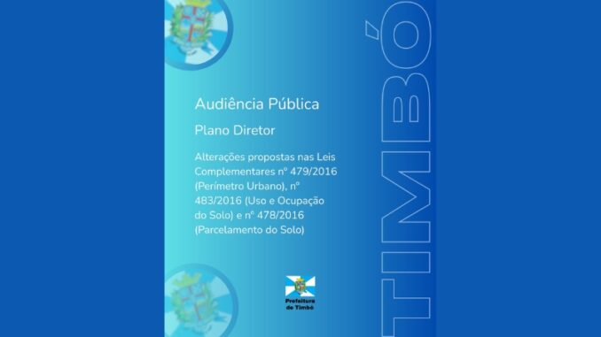 A comunidade está convidada a participar, contribuindo com o debate e acompanhando as deliberações. O material completo referente às alterações propostas está disponível no site oficial da Prefeitura de Timbó.