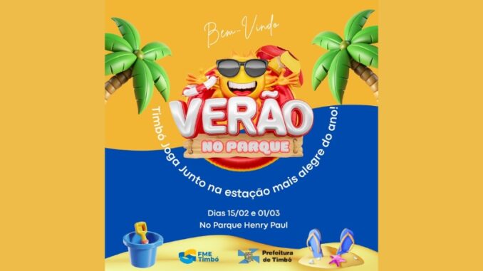 A Prefeitura de Timbó, por meio da Fundação Municipal de Esportes (FME), promove neste domingo, dia 15, mais uma edição do “Verão no Parque”, evento gratuito voltado ao lazer, esporte e diversão para toda a família. A programação será realizada no Parque Henry Paul, reunindo diversas atividades recreativas, culturais e esportivas para crianças e comunidade em geral. O horário será das 15h às 19h.