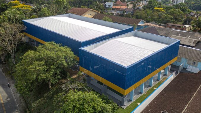 A Prefeitura de Blumenau, por meio da Secretaria de Educação (Semed), entregou nesta quarta-feira, dia 5, o novo ginásio Joél Gonçalves de Menezes, com quadra poliesportiva, banheiros e rampa de acessibilidade, na EBM Bilíngue Profª Norma Dignart Huber. No total, 298 estudantes foram beneficiados com a obra.