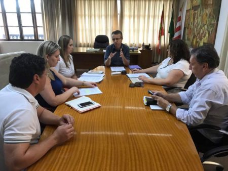 A foto abaixo foi tirada durante reunião do prefeito em exercício e a equipe da secretaria, para tratar do assunto.