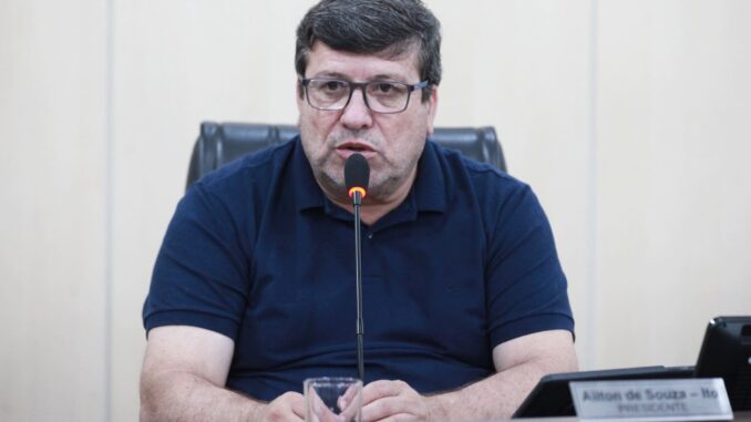 No meio da sessão desta terça-feira, o presidente da Câmara, Aílton de Souza, o Ito (PL), chamou todos os vereadores para uma reunião reservada na sala que fica ao fundo do plenário. Um dos assuntos tratados é a intenção de anunciar a proposta de retomar o projeto original de construir a sede própria, no terreno que já pertence ao Legislativo, localizado na mesma Alameda Duque de Caxias, perto da atual sede.