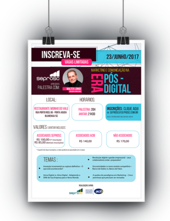 O tema é pertinente e o palestrante renomado. Essa combinação vale o investimento. O presidente do Grupo Abril, Walter Longo falará em Blumenau sobre Marketing e Comunicação na Era Pós-Digital.