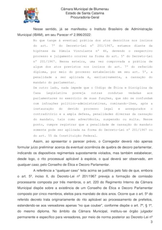 Tanto a Procuradoria Jurídica da Câmara quanto o corregedor Flávio Linhares (PL) se manifestaram favoráveis à abertura da Comissão de Ética para analisar uma possível quebra de decoro parlamentar pelo vereador Almir Vieira (PP), envolvido em uma operação policial realizada na semana passada. A acusação é de peculato, corrupção ativa, corrupção passiva e lavagem de capitais.