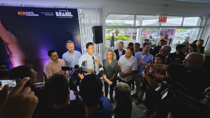 O evento contou com a presença dos deputados federais catarinenses Pedro Uczai e Ana Paula Lima, professores da Educação Básica e reitores de instituições de Ensino Superior. A data marcou, ainda, a entrega simbólica da Carteira Nacional Docente, documento oficial do Ministério da Educação que reconhece a profissão docente em todo o país.