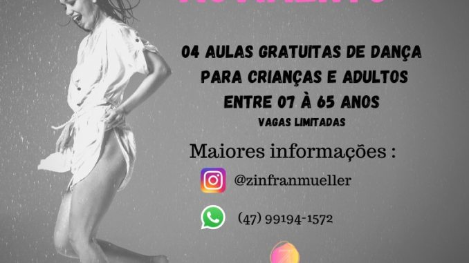O projeto Dança Além do Movimento, viabilizado com recursos da Lei de Emergência Cultural Aldir Blanc (Lei 14.017/2020), está oferecendo 30 vagas para aulas gratuitas em fevereiro. São quatro encontros de 40 minutos para interessados em aprender a arte, sendo que o público alvo são alunos com idades de 7 a 65 anos que residam em Blumenau. As reservas de vagas deve ser feitas até 28 de janeiro diretamente com a proponente do projeto, Franciele Mueller.