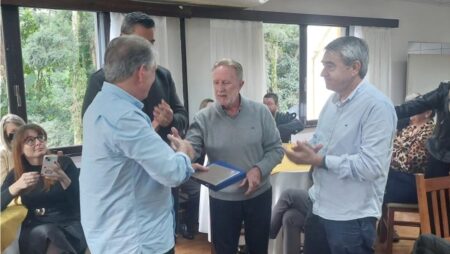 Ele recebeu uma placa alusiva a este período, entregue pelos ex-presidentes municipais Raimundo Mette, Valdair Matias e Alexandre Matias. A atual presidente, Maria Regina Soar, não compareceu, por estar cuidando do marido que recupera-se de uma cirurgia.