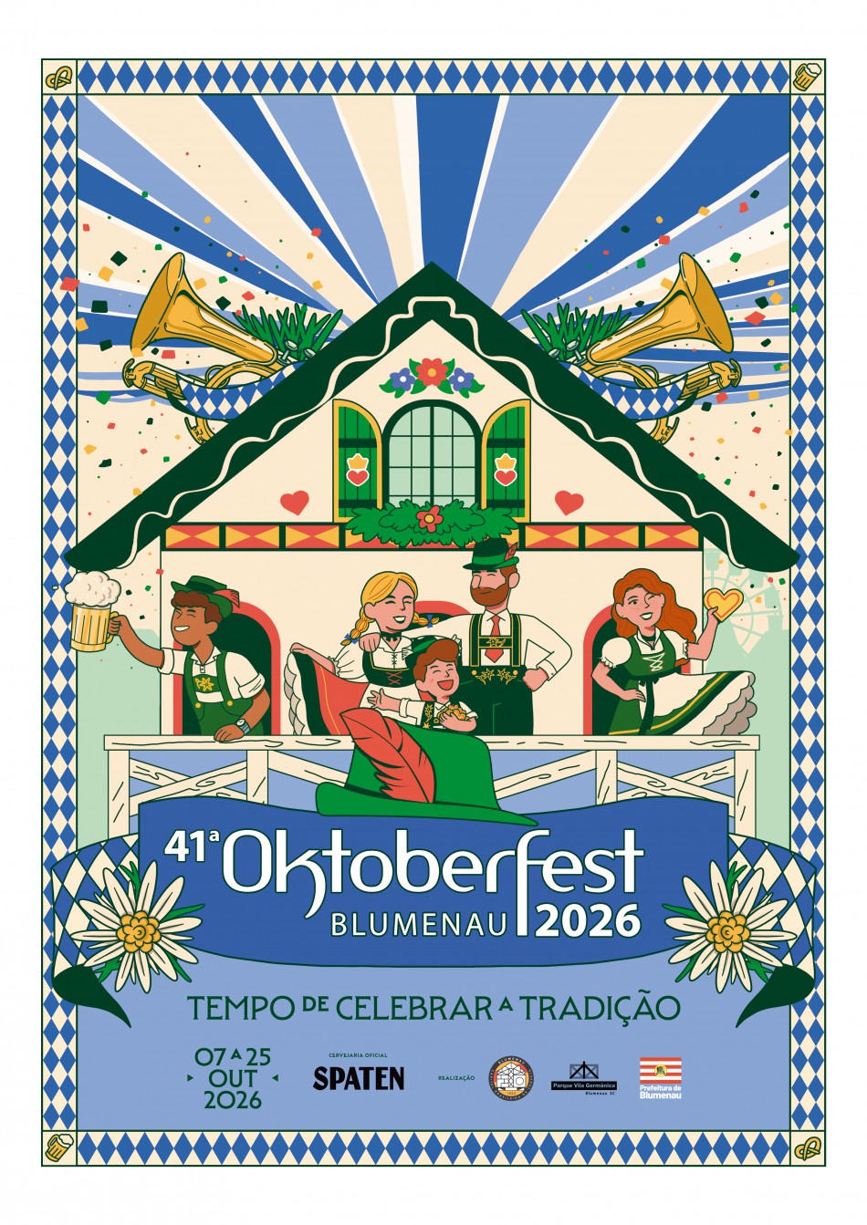 O cartaz oficial da Oktoberfest Blumenau 2026 foi desenvolvido pelo artista e ilustrador Eduardo Rosa, em parceria com a Agência Seven Comunicação, de Blumenau. Fundador do Rosa Eduardo Studio, com sede em Curitiba, Eduardo Rosa é reconhecido por seu trabalho em ilustração, animação e design gráfico, com uma trajetória marcada por projetos autorais e forte identidade visual.