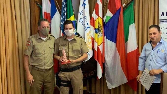 Na noite desta quarta-feira, o Rotary Clube Hermann Blumenau fez a homenagem ao Soldado da Polícia Militar de Blumenau Daniel Silvério. No dia 11 de novembro, Daniel fez salvamento de um bebê que chegou engasgado ao 10º Batalhão da PM. O pai pediu ajuda e a atuação de Daniel foi decisiva para salvar o bebê que havia se engasgado com leite.