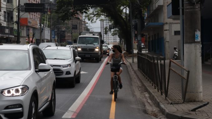 Ciclistas de Blumenau terão mais 1,8 km de ciclofaixa para transitar bem no centro da cidade. A Rua Sete de Setembro está recebendo nova sinalização, com a demarcação da pista para o transporte cicloviário. O trecho vai da Rua Amadeu da Luz até a Rua Amazonas, interligando com a ciclofaixa do Corredor Sul.