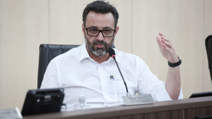 Na sessão desta quinta-feira (21), a Câmara de Blumenau recebeu o secretário municipal de Conservação e Manutenção Urbana (Seurb), Daniel Hostin, convocado por requerimento do vereador Ailton de Souza – Ito (PL), para prestar esclarecimentos sobre o edital nº 55/2025. O documento, que trata da contratação de serviços de manutenção da cidade, foi suspenso pelo Tribunal de Contas do Estado após apontamentos de irregularidades. No início da sessão, foi feita a leitura do requerimento, que questionava desde a origem do modelo do edital até possíveis responsabilidades administrativas diante das falhas apontadas.