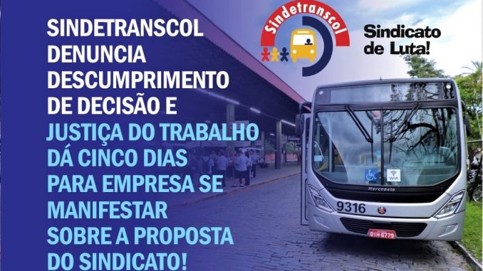 A assessoria jurídica do Sindetranscol entrou nesta segunda-feira com uma petição na ação já protocolada contra a Blumob sobre as cerca de 450 demissões, ação que obteve uma liminar suspendendo-as, mas determinando também a suspensão de 15 dias dos contratos destes funcionários em busca de uma solução negociada. De acordo com o sindicato, a Justiça deu cinco dias para a empresa se manifestar.