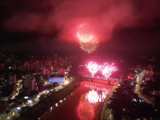 Uma multidão prestigiou a passagem de ano no centro de Blumenau, mesmo com a instabilidade do clima. Confira nas fotos do Giovanni Silva, da Prefeitura de Blumenau.