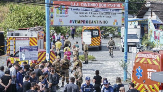 Coletiva de imprensa de autoridades sobre o ataque em creche de Blumenau.