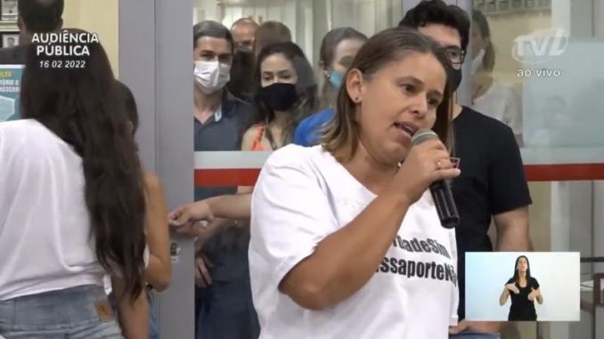 Ainda sobre a audiência pública desta quarta-feira, que discutiu a exigência do passaporte sanitário e da vacina, quero compartilhar a fala de uma figura chave para que ela tenha acontecido. Ionara da Silva Souto, servidora pública, que segundo a proponente Silmara Miguel (PSD), foi a pessoa que a fez propor a realização do debate.