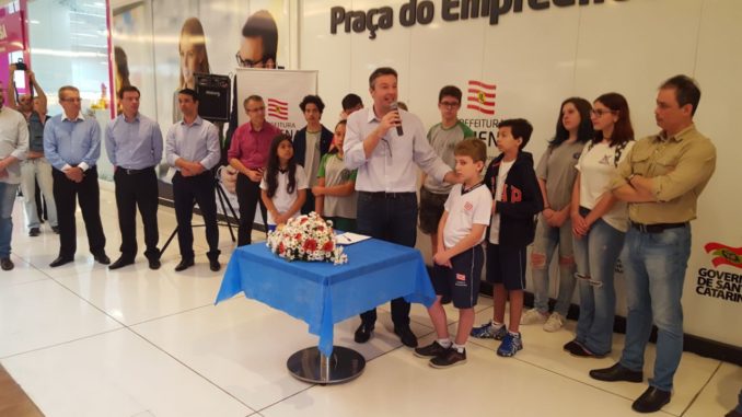 O prefeito antecedeu sua fala fazendo a relação com as crianças que participam do projeto prefeito por um dia.