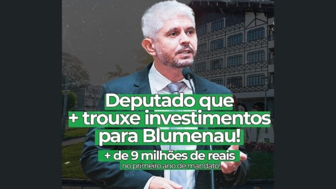 “O deputado que mais trouxe recursos para Blumenau”, diz em suas redes sociais, afirmando que trouxe R$ 9 milhões para a cidade. R$ 7 milhões para a saúde, R$ 1 milhão para câmeras de segurança, R$ 800 mil para educação, R$ 600 mil para segurança e R$ 250 mil para Defesa Civil, recursos que vieram através das emendas individuais impositivas e de bancada referente apenas a 2023. Outro tanto deve vir através das emendas deste ano.