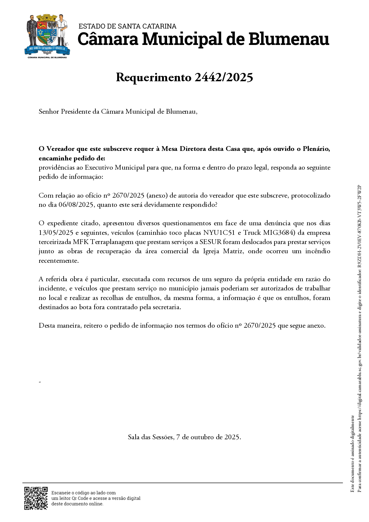 O vereador Aílton de Souza, o Ito (PL), presidente da Câmara de Blumenau, apresentou um requerimento, aprovado peplo plenário, pedindo explicações para a secretaria de Manutenção e Conservação Urbana.