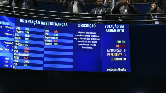 14 vereadores mirins de Blumenau viveram um momento histórico nesta quinta-feira, 24, sem juízo de valor se para o bem ou para o mal. Mas o fato é que eles acompanharam parte da votação final da Reforma da Previdência no Senado de dentro do plenário, numa visita articulada pelo senador Esperidião Amin (PP).