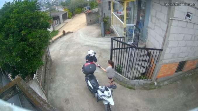 O vídeo circula pelas redes sociais. Um agente da guarda de trânsito de Blumenau, em uma motocicleta, chega em frente a uma residência, estaciona, retira um material do bagageiro e faz a entrega para uma moradora. Seria uma compra realizada por meio do site da Shopee. O fato aconteceu nesta semana.