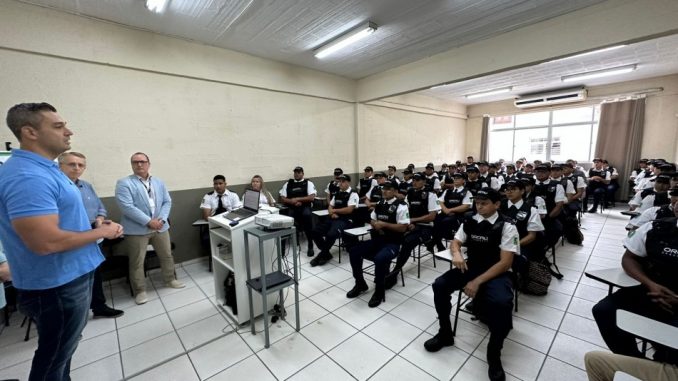 O sábado, dia 15, foi de treinamento para os vigilantes que atuarão nas unidades municipais de educação de Blumenau. Já uniformizados, os profissionais receberam capacitação e orientações para os trabalhos, que começam na manhã de segunda-feira, dia 17.